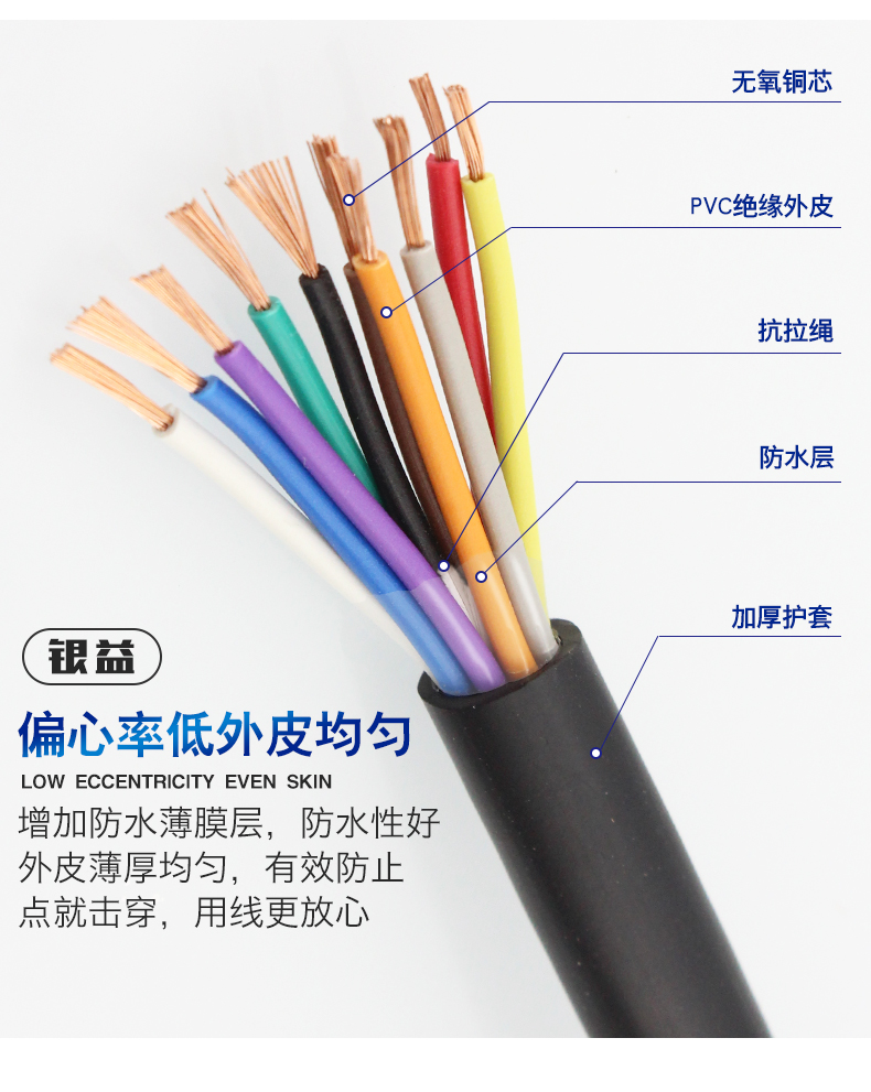 国标RVV7 8芯0.5 0.75 1.5 2.5 纯铜软护套监控控制信号电源线 国标纯无氧铜